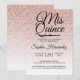 En glamorös, modern rosa glitter ombre-design Quinceañera 15-födelsedagsinbjudan innehåller texten "Mis Quince" i handskrivet skript i svart chic med kalligrafi. Perfekt 15:e födelsedagsfest inbjudan för en glamorös quinceañera, perfekt för henne, den på modet som kärlek modern mönster, gnistra, lyx och glam. Enbart designad för dig av Lycklig Dolphin Studio.