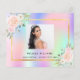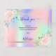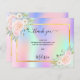 Ett giggt och elegant tack som du kort med foto. En regnbåge, holografisk bakgrund i rosa, lila, blått och mynt grönt, dekorerad med blommor. Anpassa och lägg till tackkortet.