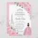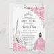 Quinceañera Rosa ros Blommigt Paris Eiffel Silver Inbjudningar
