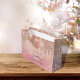 En presentväska för en girig och glamorös Quinceañera, 15:e födelsedagsfesten. En rosa, övertoningsbakgrund för ro guld med faux glitter-droppar, färgdroppstift och ballonger. Texten: namn är skriven med ett modernt handskript i stil. Anpassa och lägg till datum, namn och ålder.