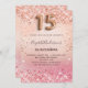 En modern, snyggt och glamorös inbjudan till en flickas Quinceañera, 15:e födelsedagsfesten. En övertoningsbakgrund för ro guld och rosa, konetti. Namn är skrivet med ett modernt skript för färgaden ro guld i mörk, skrivet med stil. Anpassa och lägg till information om party. Nummer 15 är skript med stil som ballong.