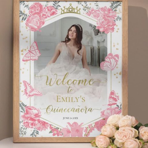 Quinceanera Rosa Sittplatsdiagram Fjärilar Poster
