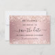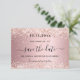 A Spara datumet för en Quinceañera, 15:e födelsedagsfesten. En metallisk rosa tittar bakgrund som dekoreras med ro faux glitter damm från guld. Anpassa och lägg till datum och namn/ålder. Texten: Spara datumet skrivs med ett stort trendig-handskript i stil med dekortecken.