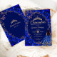 Inbjudan till royal Blue och guld Quinceanera firande. Med brunettflicka i boll-klänning, skript, guld-fjärilar, vattenfärg ro och tiara. Perfekt för en elegant prinsessan stil glam firande. Anpassa med dina egna detaljer. Skrivna Zazzle-inbjudningar eller digital utskrivbar mall för omedelbar nedladdning.