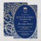 Quinceanera Royalblå och Guld Prinsessa Monogram Inbjudningar