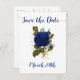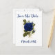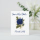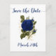 Elegant Spara vykortet Datum med vackra korsning av rik, royal blå ro och ro. Den här blommigten har Spara datum och ditt viktiga datum i ett hanterat skript på framsidan och ditt anpassningsbar-meddelande på baksidan. Den här designen kan redigeras till vilken tillfälle som helst och är en perfekt som matchar vår Quinceanera Royal blue Ro-samling.