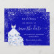 Ett giftigt och trendig Spara datumkortet för en Quinceañera, 15:e födelsedagsfesten. Royalets bakgrund dekorerad med faux silver glitter, gnistor och en klänning. Anpassa och lägg till datum och namn/ålder. Texten: Spara datumet skrivs med ett stort trendig-handskript i stil.