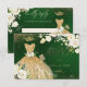Quinceanera RSVP Smaragdgrön Guld Glitter Klänning Inbjudningar