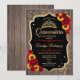 Rustik guld röd Quinceanera-fest inbjudan.