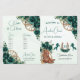 Fira traditionen med detta prisvärda Charro Quinceañera-program, med livfulla smaragdgröna blommor, guldfärger, hästsilhuetter och cowboystövlar prydda med blommor. En subtil hästsko lägger en rustik charm till detta vikbara tvådelade pappersark, som innehåller din padrinos-lista, evenemangsordning, corte de honor - damas och chambelanes—allt i en elegant design.