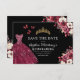 Meddela din quinceañera i stil med Blommigten Burgundy Spara inbjudan på födelsedagen. Den här eleganten har rik-burgundnyanser som är adsorterade med delikata accenter för blommigt, perfekt för tidslängd och regalt firande. Den sofistikerade layouten ger alla viktiga detaljer och ser till att gästerna markerar sina kalendrar för din speciella dag. Oavsett om man är parad med guld eller annat färg, framkallar burgtonerna en känsla av romantik och storhet. Ange tonen för din quinceañera med det här vackert utformade datumet för att spara datumet och se till att du minns händelsen.