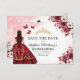 Meddela din quinceañera i stil med Blommigten Burgundy Spara inbjudan på födelsedagen. Den här eleganten har rik-burgundnyanser som är adsorterade med delikata accenter för blommigt, perfekt för tidslängd och regalt firande. Den sofistikerade layouten ger alla viktiga detaljer och ser till att gästerna markerar sina kalendrar för din speciella dag. Oavsett om man är parad med guld eller annat färg, framkallar burgtonerna en känsla av romantik och storhet. Ange tonen för din quinceañera med det här vackert utformade datumet för att spara datumet och se till att du minns händelsen.