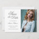 Quinceañera 15:e födelsedagsinbjudan Spara datumskriptet, vitt fotokort. Lämpligt för Sweet 16 eller studentfest!