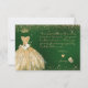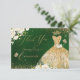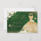 PixDezines elegant quinceanera Tack Emerald grönt bakgrund, guld glitter gown och vattenfärgblommor i Alabaster kräm, hydrangea och lush grönt foliage.