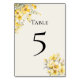 Quinceanera yellow gold Table Number Card