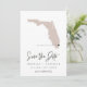 Denna save the date har en roséguld Florida-karta med redigerbar färg och flyttbart hjärta/byta plats! Ändra enkelt destinationen och redigera *mestadels* texten för att passa dina behov. Lägg till ditt eget foto på baksidan för en personlig touch.