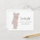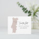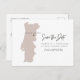 Denna resetematiserade spara-datum-postkort har en skär Portugal-karta och postkortbaksida. Ändra enkelt färgerna och flytta hjärtat runt för att framhäva din destination. Redigera *mestadels* texten för att matcha dina behov och lägg enkelt till ett speciellt meddelande på baksidan av inbjudan.