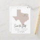 Det här resetemat sparar datumet för vykort med Texas karta och vykortsstöd. Byt enkelt färg och flytta runt hjärtat för att markera ditt mål. Redigera *de flesta formuleringar* som passar dina behov och lägg enkelt till ett speciellt meddelande på baksidan av inbjudan.