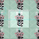 Struktur som har en mönster av zebröder (som visar ansikte och nacke) som var och en bär ett par rosa flamingo-solglasögon och som står framför en grönt av herringbenets mönster bakgrund.