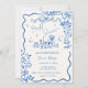 En modern vismisk och funky hand plockade klottar inbjudningskort för möhippan efter den senaste trenden i bröllop stillastående. En bläckfisk vågigt gräns ram och illustrationer av vilda blommor gör det till en perfekt contemporary trendig inbjudan. Koboltblå färg.
