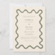 Enkel och vismisk bröllopsinbjudan med hand plockade som en ram. Du kan lägga till ett foto på baksidan med samma vågigt rad. Oliv grönt färg.