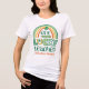 Celebrate Saint Patrick's Day in style, even at school, and show your students how lucky you are to be the one teaching them at the same time with this teacher's St Patrick's Day t-shirt personalized with the name of the school or the teacher's name. The print features a whimsical rainbow in orange, yellow, and green, a drawing of a pencil, a lucky horseshoe, patterned letters, and shamrocks.
