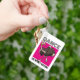 A quirky ostrich artwork on an aluminium keychain. Edit the design to tweak the "DANCE like no one's watching" text and create a unique, customized gift. Featuring my original, alternative illustration of a shaggy ostrich having a boogie, complete with striped party hat and polka dotted blower. A gift for the person who's always first on the dance floor, for fans of clubbing, partying and dancing, party animals and people who like alternative animal art.