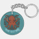 A quirky red octopus illustration on an acrylic keychain. Edit the design to add your own text and make a unique, customized item; text changes are reflected on both sides. Featuring my original illustration of a fierce octopus with a mean expression, red curling tentacles spread in all directions and fleshy coloured suckers exposed. A shoal of fish stream past in the background. A small gift for fans of octopuses, pirate and nautical themes and cephalopods with attitude.