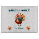 Fyll i Thanksgivingens kök med den här snygga skärbrädan av glas med en charmig kalkondesign och den lekande frasen: "Gobble til you Wobble!" Med den här anpassadet kan du lägga till din familj namn, skapar den till ett unikt tillägg till ditt helgdag eller en tankfull gåva till vänner och familj. Den pulserande kalkondesignen ger en snygg pekskärm, perfekt för Thanksgiving- och bakningsverksamhet eller som matlagningsdeka för köket.