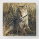 Coyote Liggande Klocka. Ett mycket bra fotografi av en vacker ung coyote när den lägger sig ner för att vila på en het sommardag på prärien i sydöstra Alberta, Kanada.