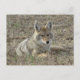 Coyote vykort. En ung coyote slappnar av efter en morgon att jaga möss på de korta grässtäpperna i södra Alberta.