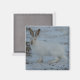 Snöskohare Magnet. Det här fotot visar en snöskohare i sin vita vinterdräkt som är perfekt kamouflage om det finns snö, ibland smälter chinookvindarna snön och lämnar dessa harar ganska exponerade.