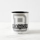 R är för Ramon! Är ditt namn Ramon? Eller har du en make, en pojkvän, en male familjemedlem eller en manlig vännen namngav Ramon? Om så, är denna "initialer" mugg exakt gåvan som du söker efter! Designen presenterar "Ramon" i skisserat svart märka överst av brev "R" i grått skisserad bokstäver.
