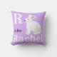 R är för Rachel flicka Dekorativ kudde Back har 9 kaniner Namn kan bytas till vilken namn som helst med R