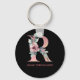 R Blommigt Monogram Namn Brev Rosa Agate Keychain Nyckelring