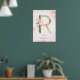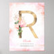 R Bokstavsmonogram Guldblad Rosa Magnolia Blommig Poster
