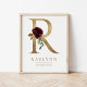 R Brev Monogram Namn Marsala Blommigt Nursery Poster