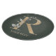 Brev R monogram blommigt. Brev R i guldbrun struktur accentuerad med grönt vattenfärgade löv, blommor och blommar från guld. Personlig med namn i matchande teckensnitt.