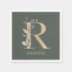Brev R monogram blommigt. Brev R i guldbrun struktur accentuerad med grönt vattenfärgade löv, blommor och blommar från guld. Personlig med namn i matchande teckensnitt.