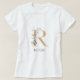 Brev R monogram blommigt. Brev R i guldbrun struktur accentuerad med grönt vattenfärgade löv, blommor och blommar från guld. Personlig med namn i matchande teckensnitt.