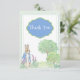 Söt kanin i trädgården med grönt och blommor i mjuka vattenfärger. En blå och vit fläck med grönt accents ram. "Tack" som samordnar blått och grönt moln ram. Utformningen överförs till baksidan av denna välvilliga inbjudan. Perfekt för pojk- eller flickbabydusch. "En söt knarkdusch". Perfekt för din händelse.