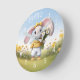 Rabbit holding bouquet of white daisies rund klocka