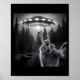 Rabbit Selfie With Ufo - Funny Bunny Graphic Alien Poster