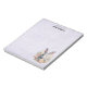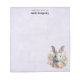 Notepad with a sweet and adorable watercolor image. A bunny rabbit with white and gray fur. A garland of carnation flowers in pastel colors of pink and peach. A cute Easter, birthday or baby shower image for bunny rabbit lovers.