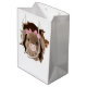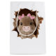 A cute brown rabbit with its ears pulled up with a pink hair clip, and a pink pacifier in its mouth,