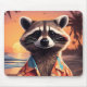 Lustigt Raccoon med en hawaiisk skjorta på en vacker strand.