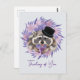 Raccoon i en hatt med en mugg kaffe. vykort