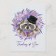 Jag tänker på dig. Raccoon i en hatt med en mugg kaffe.