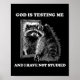 Raccoon Meme, som säger att Gud testar mig Street Poster