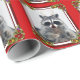 Sjalen dina julklappar med socker uthärdar denNosed Racdeeren i en festlig ram på en röd bakgrund. Sockerbjörnen kommer färdigt med en röd näsa och horn på kronhjort.